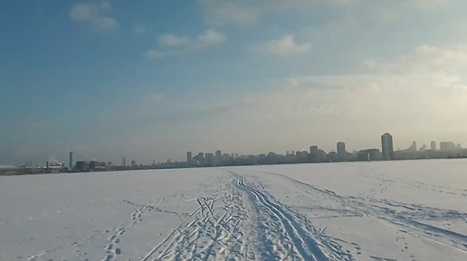 Вид на зимний Екатеринбург с глади Верх-Исетского пруда