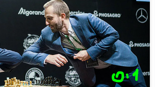 За наших радостно: Александр Грищук изумительно точно жертвует качество 29...♘e5 Пранаву Венкатешу и здорово выигрывает в рапид-партии, 0-1