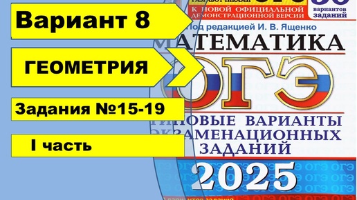 Вариант 8 (№15-19) | Геометрия | ОГЭ математика 2025|Ященко 50вар