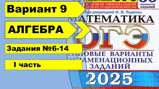Вариант 9 (№6-14) | Алгебра| ОГЭ математика 2025| Ященко 50вар.