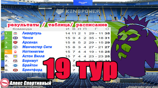 Чемпионат Англии (АПЛ) 19 тур. Таблица, расписание, результаты.
