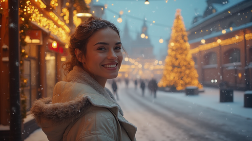 Снежные улицы и рождественская магия: Ночная Москва 🔥