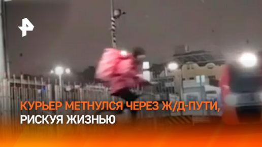 "Ты куда? Стой!" — курьер на велосипеде переехал ж/д пути прямо перед несущимся поездом