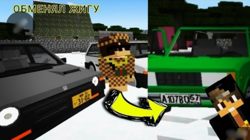 ОБМЕНЯЛ ЖИГУ НА 2 АВТОМОБИЛЯ.ПОСТРОИЛИ 2 ГАРАЖА В МАЙНКРАФТ...