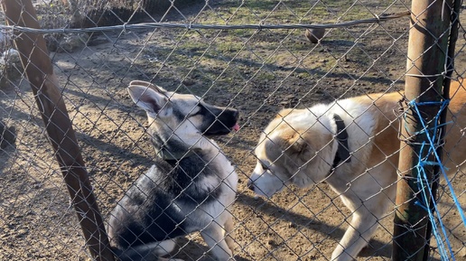 Восточно-европейская овчарка и Алабай на прогулке- ПЕРВОЕ ЗНАКОМСТВО