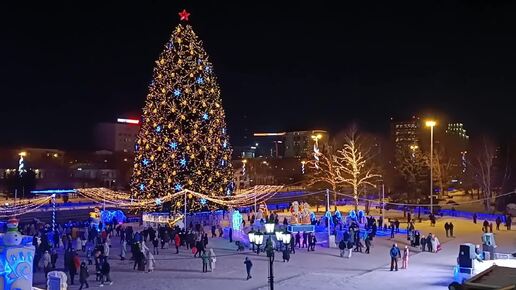 Главная городская новогодняя ёлка и ледяной городок Екатеринбурга 2025 Исторический сквер. Плотинка. река Исеть.