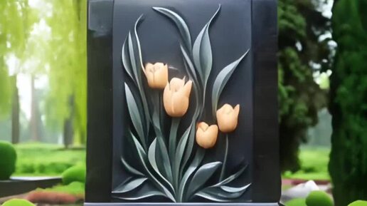 Модель памятника с букетом тюльпанов.