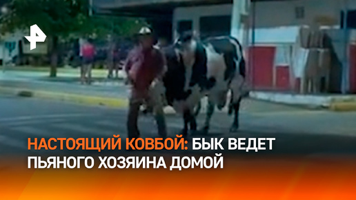Бык ведет пьяного хозяина домой — с таким зверем не стоит бояться, что заблудишься