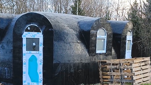 Строим каменный дом без углов с овальным куполом. Внешняя отделка и монтаж окон.