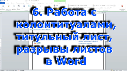 6. Работа с колонтитулами, титульный лист, разрывы листов в Word