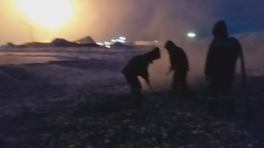 Продувка щебня в сильный мороз.