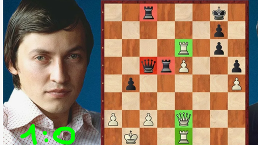 Анатолий Евгеньевич Карпов против Виктора Купрейчика с безупречной красивой победой за белый цвет (чемп. СССР по шахматам 1976, 1-0)