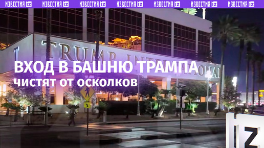 Вход в башню Трампа в Лас-Вегасе, где произошел взрыв авто Cybertruck, расчищают от осколков