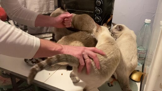 Как мои кошки пристают к моему зятю. чтобы он их погладил