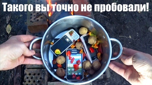 МОБИЛЬНЫЕ ТЕЛЕФОНЫ В СКОВОРОДКЕ НА КОСТРЕ С КАРТОШКОЙ ЧЕСНОКОМ И ОРЕХАМИ!ЛУЧШИЙ РЕЦЕПТ В ИНТЕРНЕТЕ!
