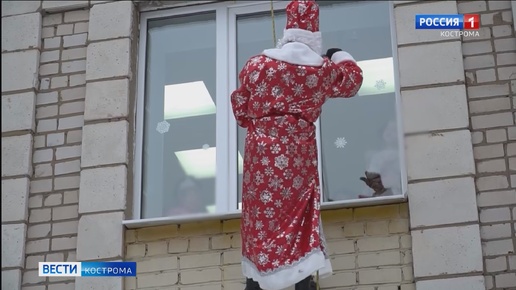 Крепкий Дед Мороз явился к детям в Костроме прямо через окно
