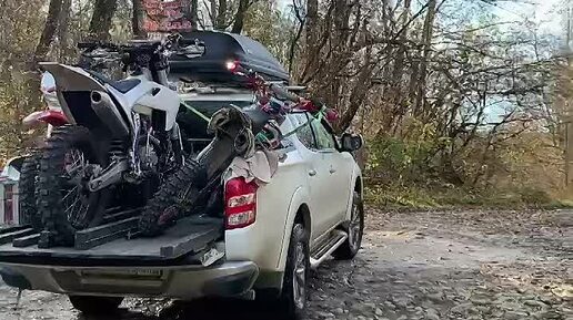 Митсубиси L200 пикап вывозит 3 мотоцикла Эндуро 2 питбайка Кайо и GR7