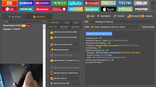 Xiaomi Redmi 9C NFC / Mi account + Frp / Удалить Гугл аккаунт / Unlocktool