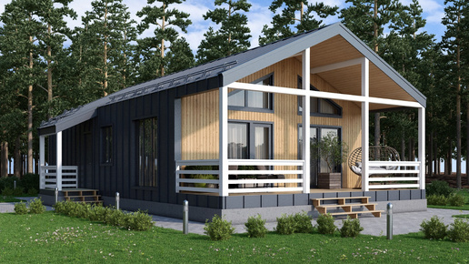 Обзор одноэтажного дома размером 8х15м в стиле барнхаус