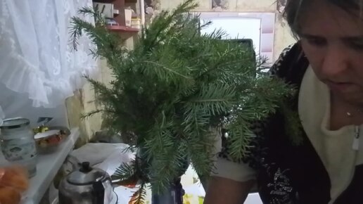 Украшаю ветки пихты, поднимаю нам с бабой валей новогоднее настроение!