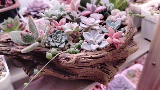 Садик- композиция в оригинальном кашпо. Новые приобретения из "Пятерочки".