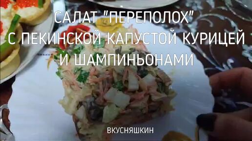 Салат Переполох с пекинской капустой, курицей и шампиньонами