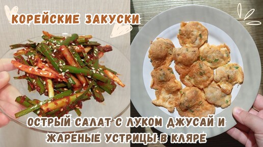 Рецепты Корейских Закусок - Острый Салат с Луком Джусай и Жареные Устрицы в Кляре