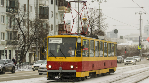 Поездка на трамвае Tatra T6B5SU, №753, по маршруту 6