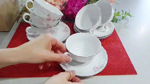 Набор чайных пар 220 мл 6 шт "Рококо /Серая роза /платина" / 264424