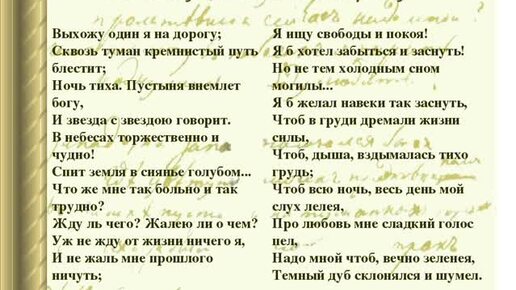 Выхожу один я на дорогу, Лермонтов