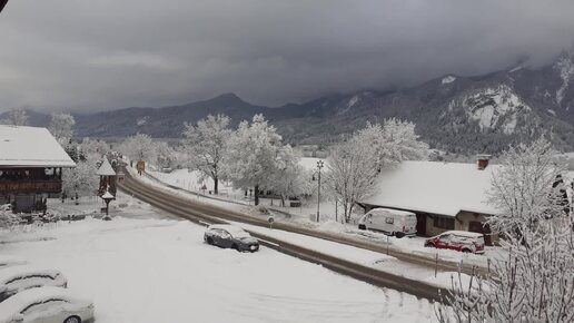 Нойшванштайн и заснеженный ландшафт - вид с балкона отеля