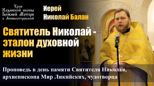 Святитель Николай - эталон духовной жизни / Иерей Николай Балан