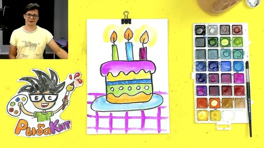 Как нарисовать ТОРТ на ДР - учимся рисовать поэтапно с РыбаКит