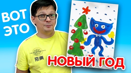 Папа рисуем Хагги Вагги на Новый год с Ёлочкой красками