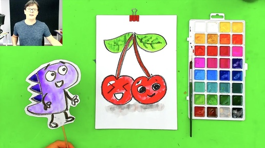Как нарисовать ВИШЕНКИ - рисунки с Динозавром - учимся рисовать