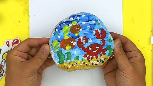 Рисуем МОРЕ на камушке красками гуашь - уроки рисования
