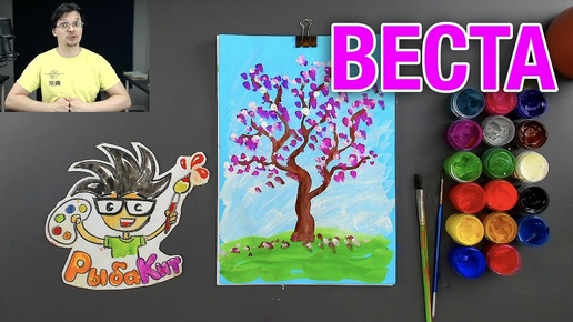 Как нарисовать дерево Сакуру - рисуем красками Весна - РыбаКит папа рисует