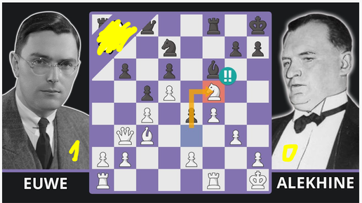Макс Эйве неожиданно выигрывает белыми у Александра Алехина в партии 29 матча 1937 года в Роттердаме, 1-0. Ферзевый гамбит, защита Тарраша
