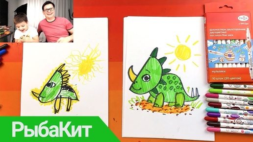 Как нарисовать ДИНОЗАВРА рисуем с Ромой - уроки рисовния от РыбаКит