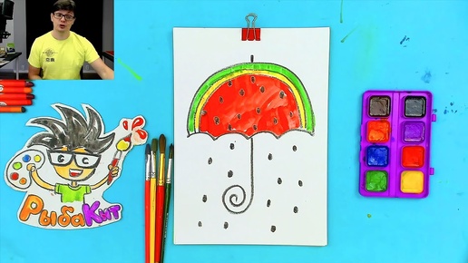 Как нарисовать АРБУЗ, зонтик и дождик красками