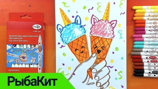 Как нарисовать МОРОЖЕНОЕ и Единорога - урок рисования фломестерами РыбаКит