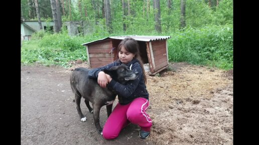 Трогательная любовь маленькой девочки и немолодой собаки. Первое видео от маленькой Лины
