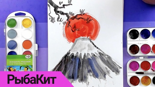 Пейзаж Японии рисуем акрарелью сакуру и гору Фудзи