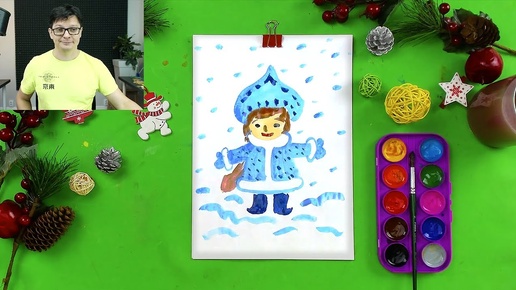 Как нарисовать Снегурочку - рисуем красками