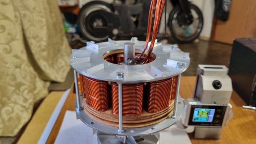 Запуск самодельного электродвигателя 6мм квадратных с двумя роторами ,вес 4.3 кг, 2400 об в мин
