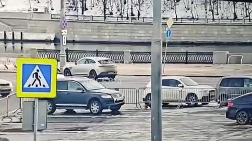 Момент падения легковушки в Москву-реку в районе Лужнецкой набережной
