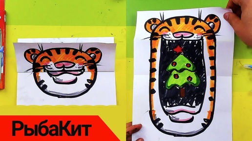Открытка СЮРПРИЗ рисуем ТИГРА на Новый год