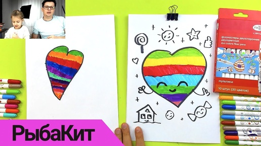 Рисуем СЕРДЕЧКО и РАДУГУ - рисунки с детьми