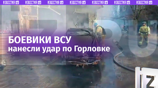 БПЛА ВСУ уничтожил автомобиль местного жителя во время атаки Горловки. Журналисты «Известий» оперативно оказались на месте