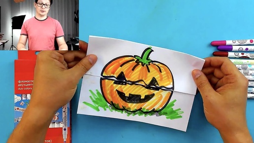 Открытка Сюрприз на Хэллоуин рисуем фломестерами